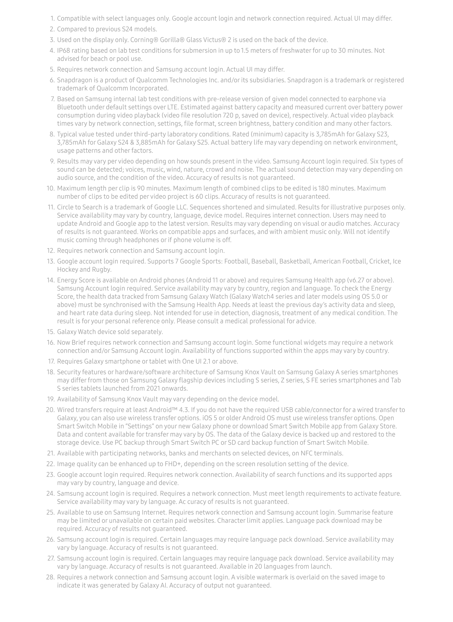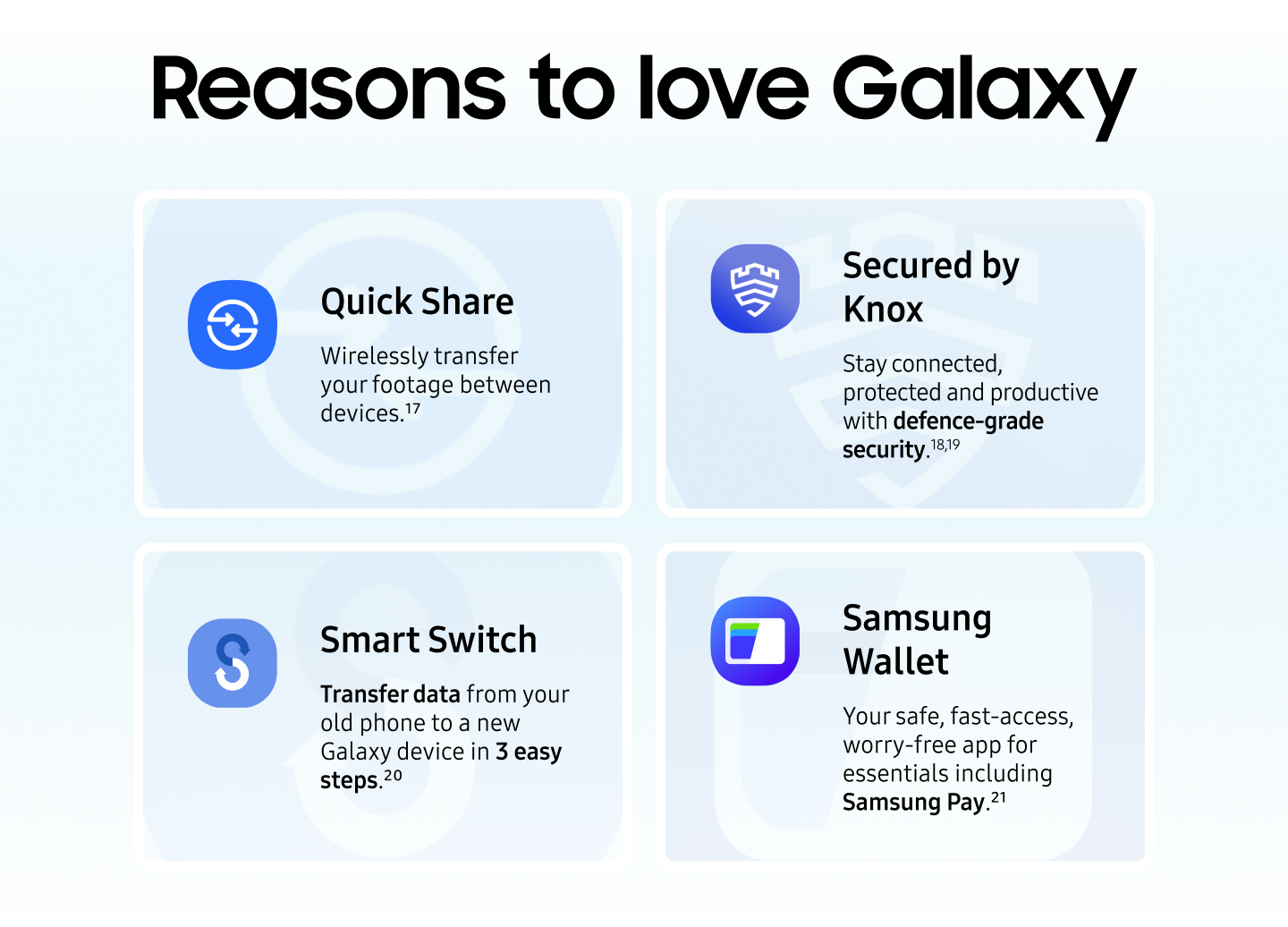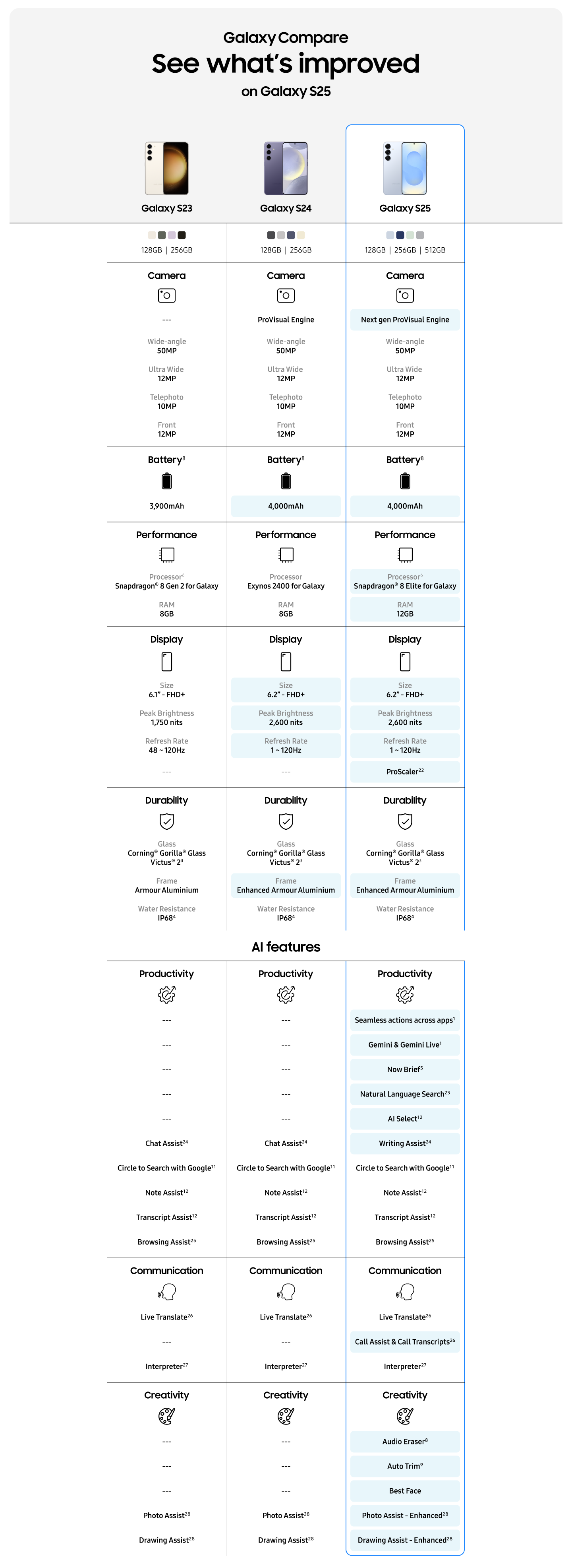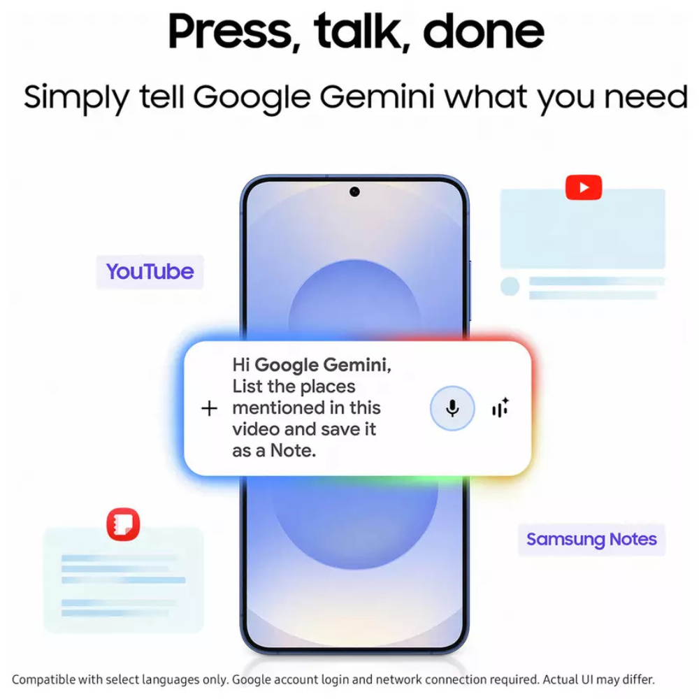 LET GALAXY AI DO THE WORKPowerful AI tech built in to level up your everyday in so many ways. Just press and hold the power button, and with a single voice command you can work across different apps to take care of numerous tasks. Ask Galaxy S25 to search your favourite artist's gig in your town and save it in your calendar¹. Ask Galaxy S25 to find family photos from a recent trip and it will instantly them for you. Live Translate removes the language barrier, allowing both people speak and hear in their own language.